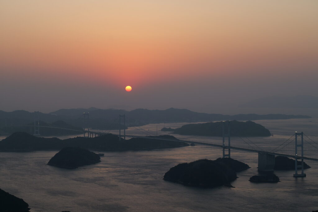 途中夕日が沈むタイミングに亀老山展望公園に向かい夕日を見に行きました。