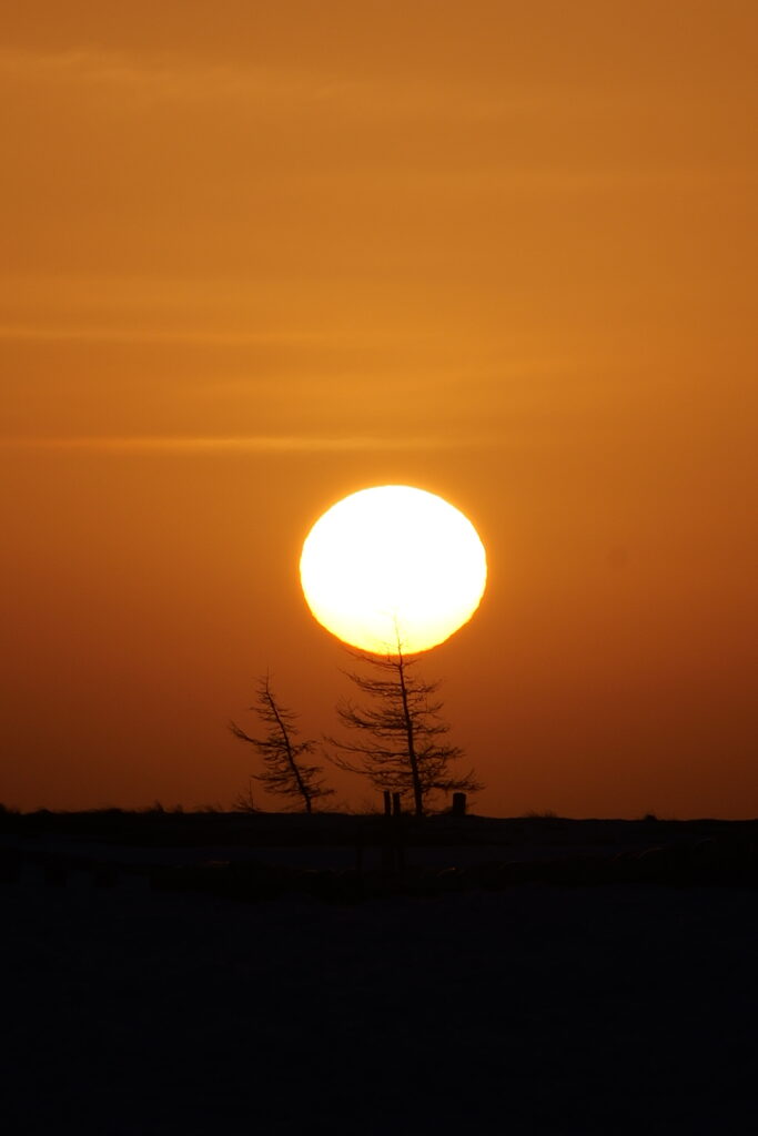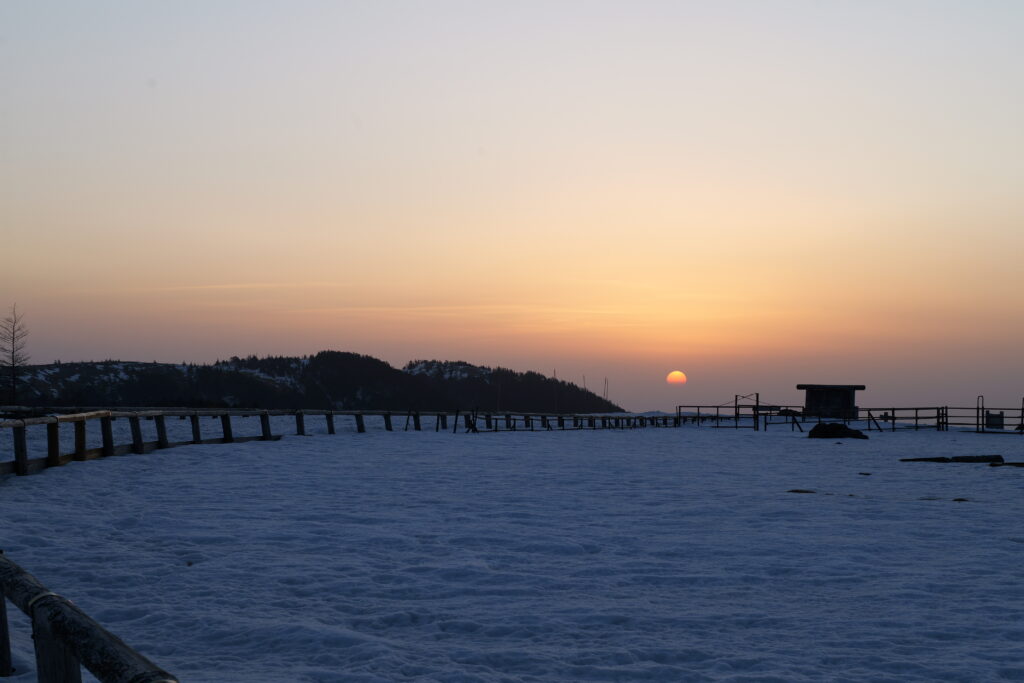 凍った空気の中で見る日の出はいつもより少し特別に感じました。