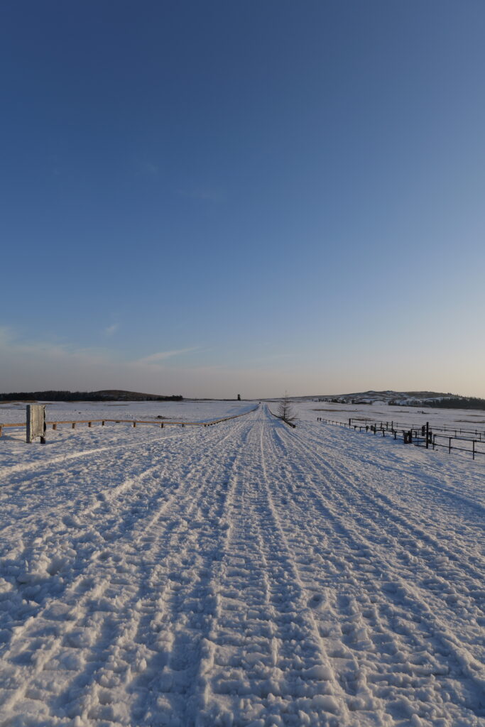 本来は一面に広がる草原と牛が映える景色ですが3月ということもあり一面雪景色で音のない静寂な高原で別世界のように感じました。